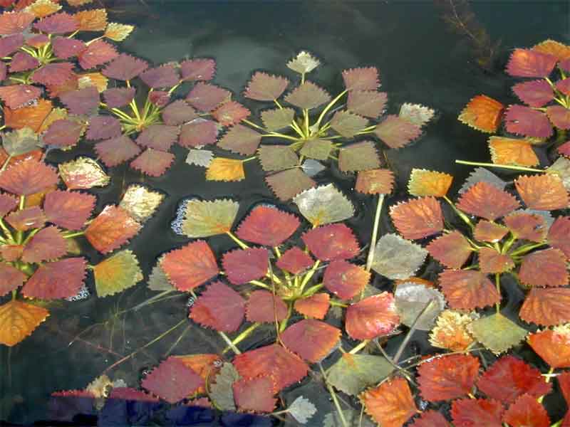 Семейство Рогульниковые Однолетние водные растения с распластанными по поверхности воды листьями и длинными подводными стеблями. Цветки до 5 мм диам., правильной формы, 4-членные, пазушные. Плавающие листья широкоромбические, подводные – супротивные, линейные, с перистоветвистыми придаточными корнями в основании. Плоды крупные, 4-рогие. Цветение: июнь. Местообитания: мелкие озёра, старицы.
